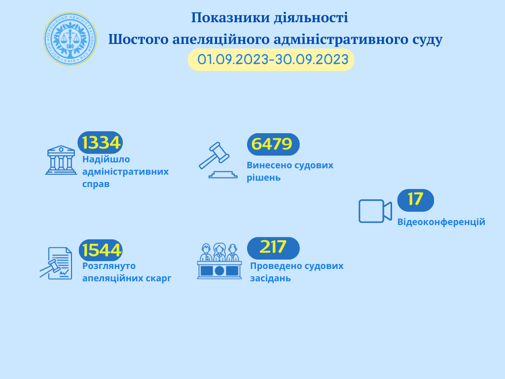 📊 Показники діяльності Шостого апеляційного адміністративного суду у період з 01.09.2023 по 30.09.2023