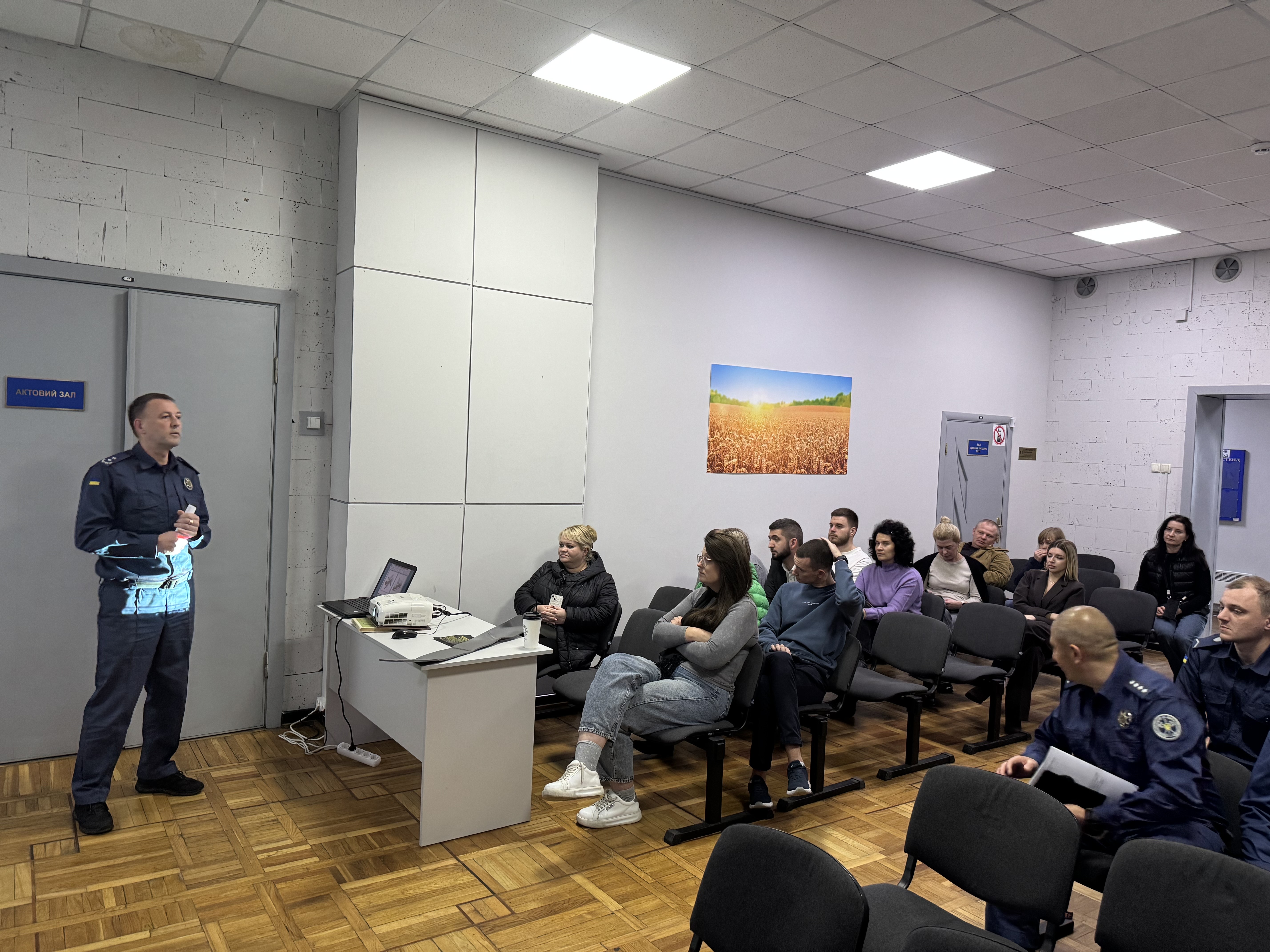 Наприкінці заходу виступив заступник начальника організації охорони та підтримки громадського порядку ТУ ССО в м. Києві та Київській області Микола Ренгевич, який розповів правила поведінки під час виникнення різних позаштатних ситуацій.